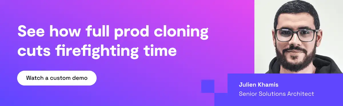 Use production cloning to remove environment drift from the conversation. When the environments are identical by default and carry safe, fresh data, CI/CD testing and application debugging feel honest again.