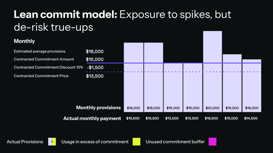 The Lean Commit Model minimizes the committed baseline while preserving the flexibility to provision what you need.
